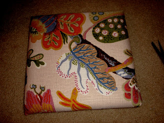 Step 5: With the staple gun and a good friend pull the fabric tight and staple. Sorry I don't have any pictures of this because both Meredith and I were using all of our hands to pull the fabric super tight!